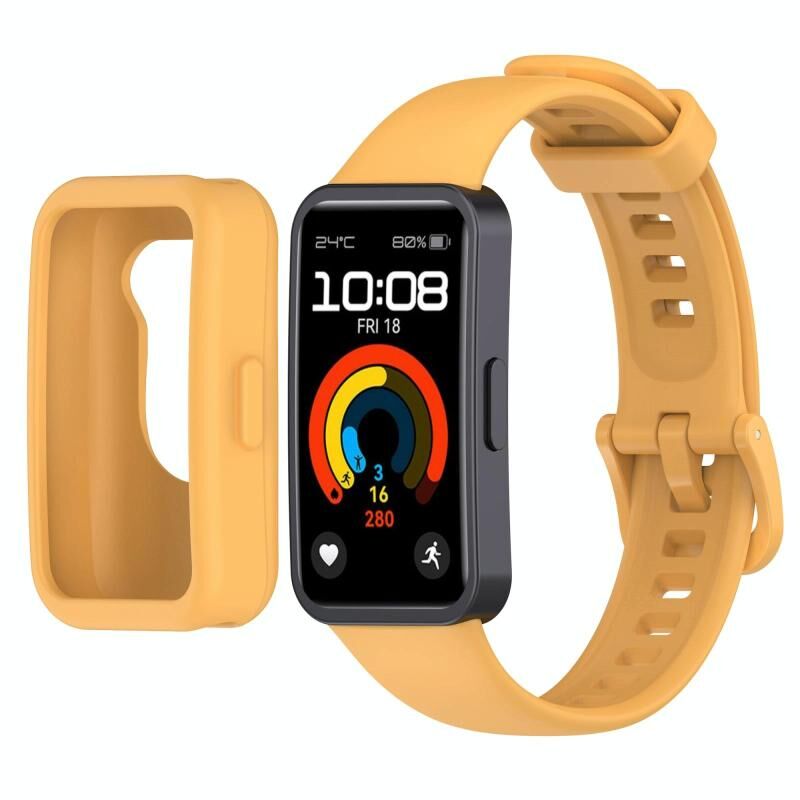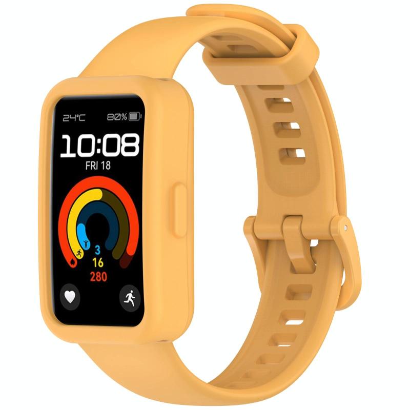 Για Huawei Band 10 / 9 / 8 Θήκη Ρολογιού με Έγχρωμο Κουμπί, Ενσωματωμένο Λουράκι Σιλικόνης (Κίτρινο)