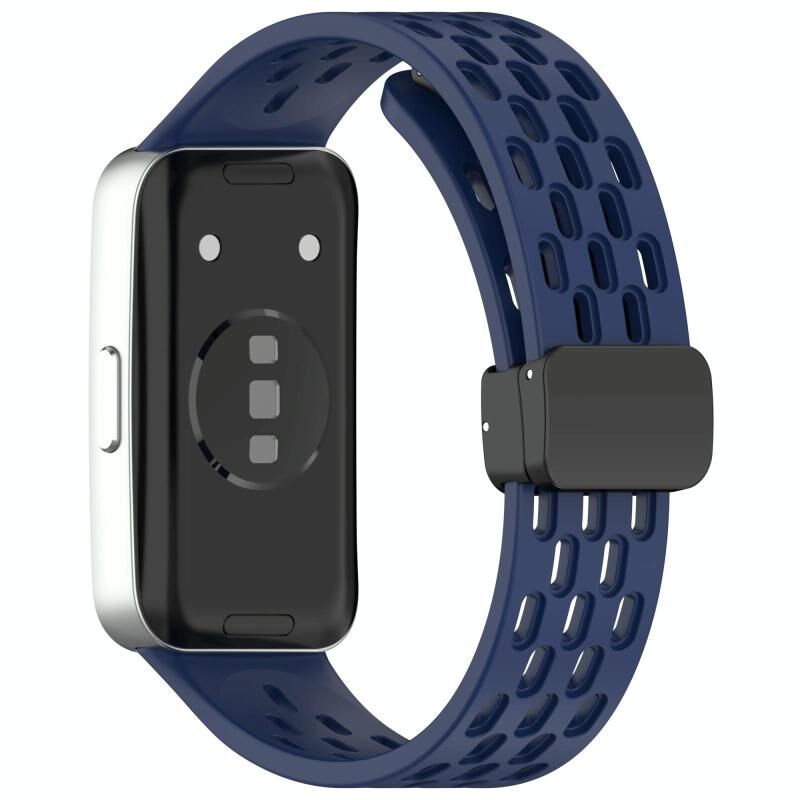 For Huawei Band 10 / 9 / 8 Hole Style Fold Magnetic Buckle Silicone Watch Band(Dark Blue)