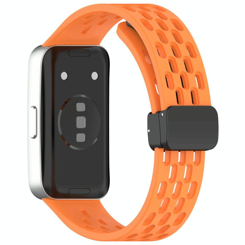 For Huawei Band 10 / 9 / 8 Hole Style Fold Magnetic Buckle Silicone Watch Band(Orange)