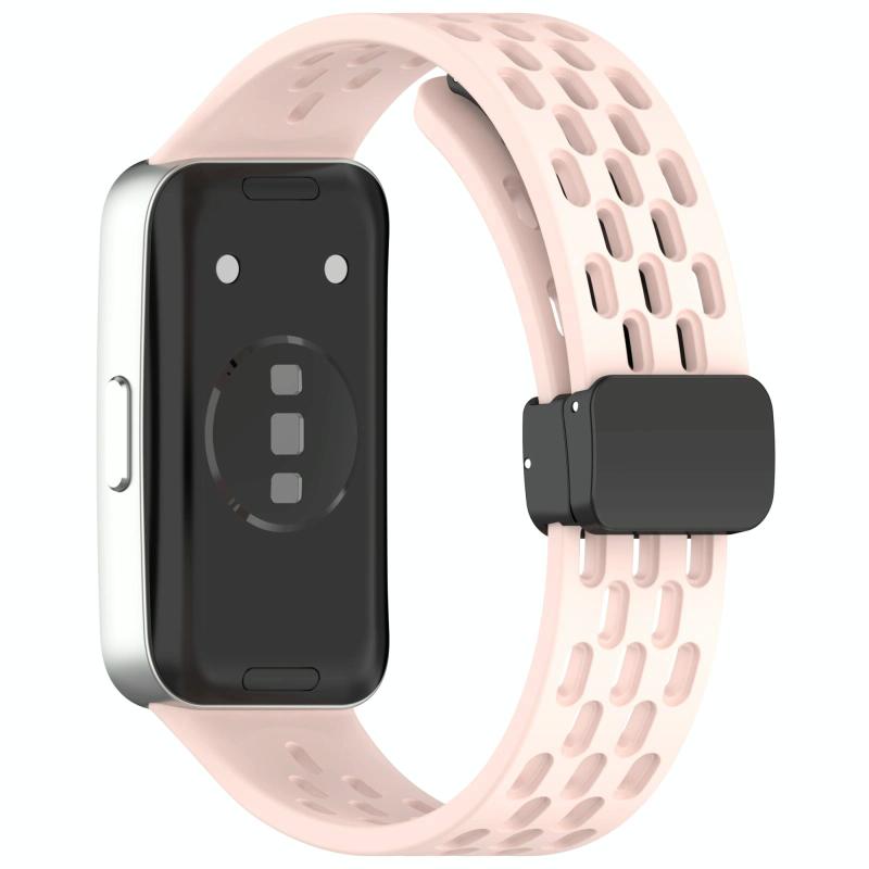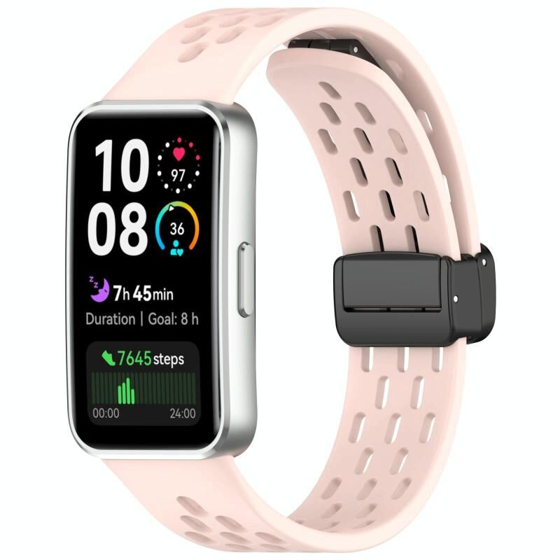 For Huawei Band 10 / 9 / 8 Hole Style Fold Magnetic Buckle Silicone Watch Band(Pink)
