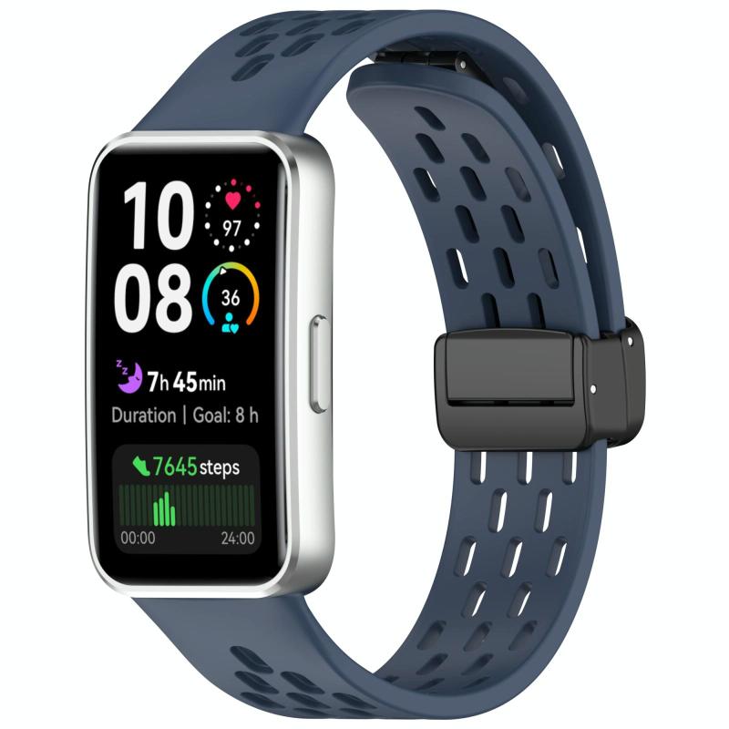 For Huawei Band 10 / 9 / 8 Hole Style Fold Magnetic Buckle Silicone Watch Band(Topa Blue)