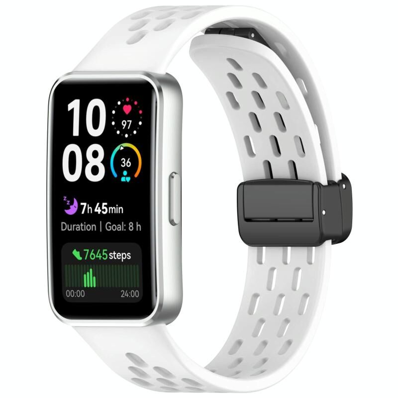 For Huawei Band 10 / 9 / 8 Hole Style Fold Magnetic Buckle Silicone Watch Band(White)