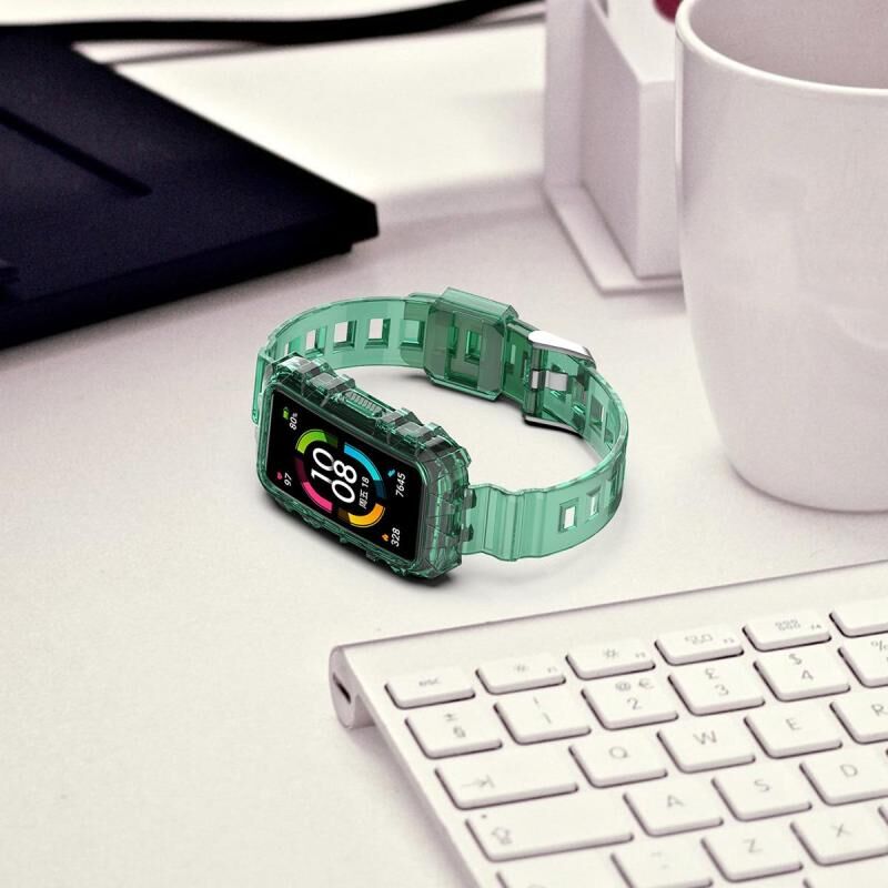 For Huawei Band 10 / 9 / 8 Integrated Transparent Silicone Watch Band(Rose Red)