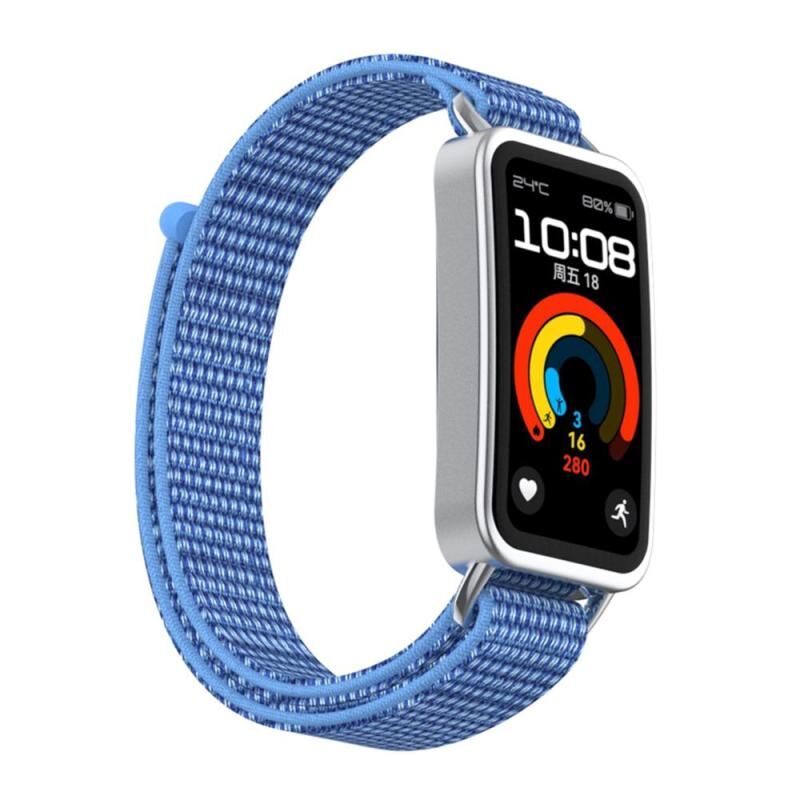 For Huawei Band 10 / 9 / 8 Metal Connector Nylon Loop Hook and Loop Fastener Watch Band(Cape Blue)