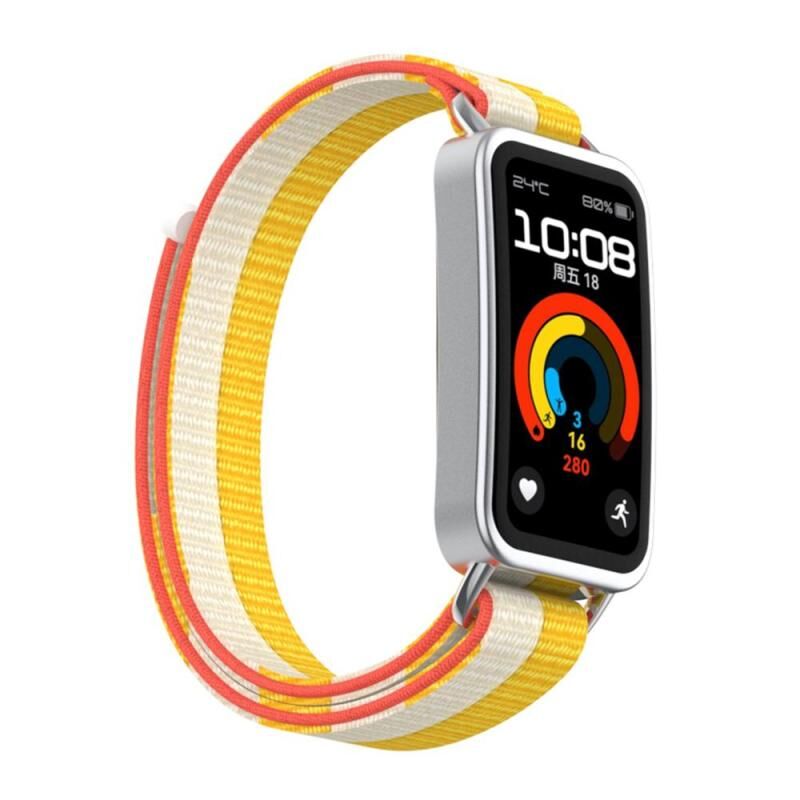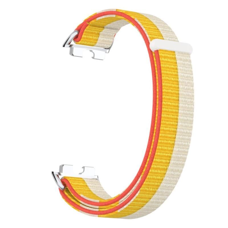 For Huawei Band 10 / 9 / 8 Metal Connector Nylon Loop Hook and Loop Fastener Watch Band(Millet White)