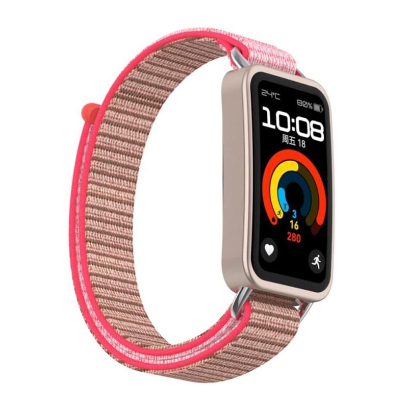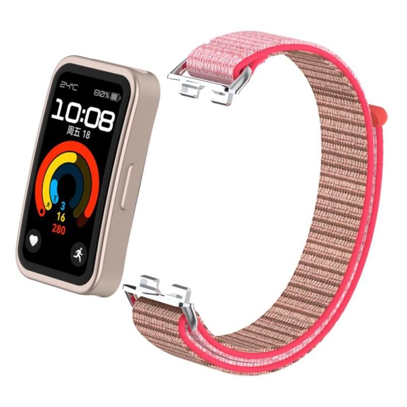 For Huawei Band 10 / 9 / 8 Metal Connector Nylon Loop Hook and Loop Fastener Watch Band(Neon Color)