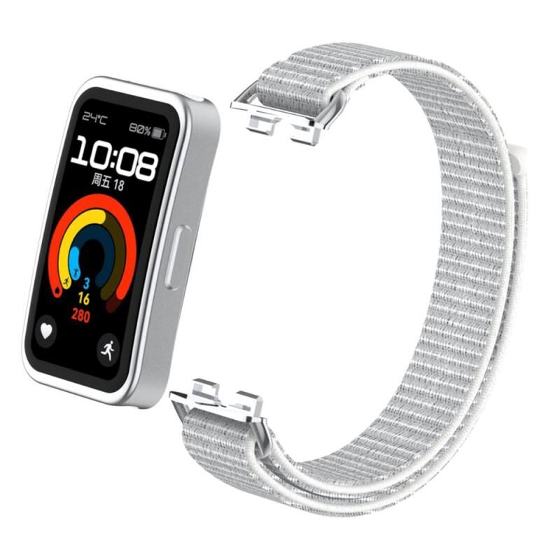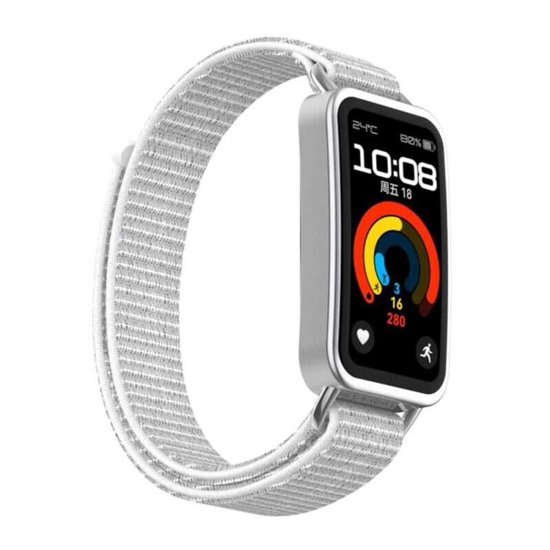 For Huawei Band 10 / 9 / 8 Metal Connector Nylon Loop Hook and Loop Fastener Watch Band(Seashell)