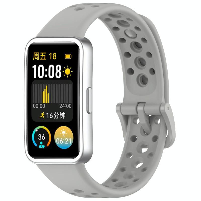 For Huawei Band 10 / 9 / 8 Metal Head Round Hole Nail Button Silicone Watch Band(Gray)