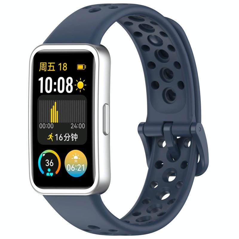 For Huawei Band 10 / 9 / 8 Metal Head Round Hole Nail Button Silicone Watch Band(Topa Blue)