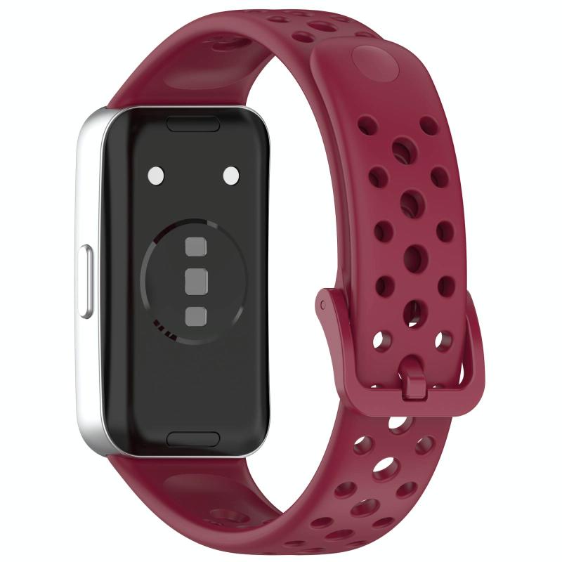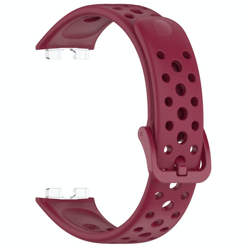 For Huawei Band 10 / 9 / 8 Metal Head Round Hole Nail Button Silicone Watch Band(Wine Red)