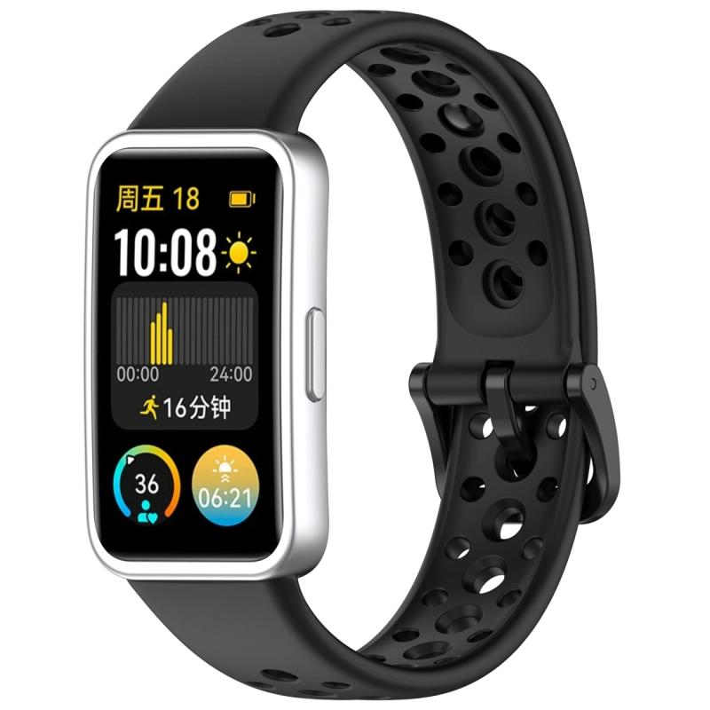 For Huawei Band 10 / 9 / 8 Round Hole Nail Button Silicone Watch Band(Black)