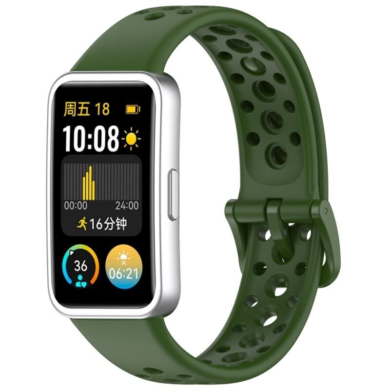 For Huawei Band 10 / 9 / 8 Round Hole Nail Button Silicone Watch Band(Dark Green)