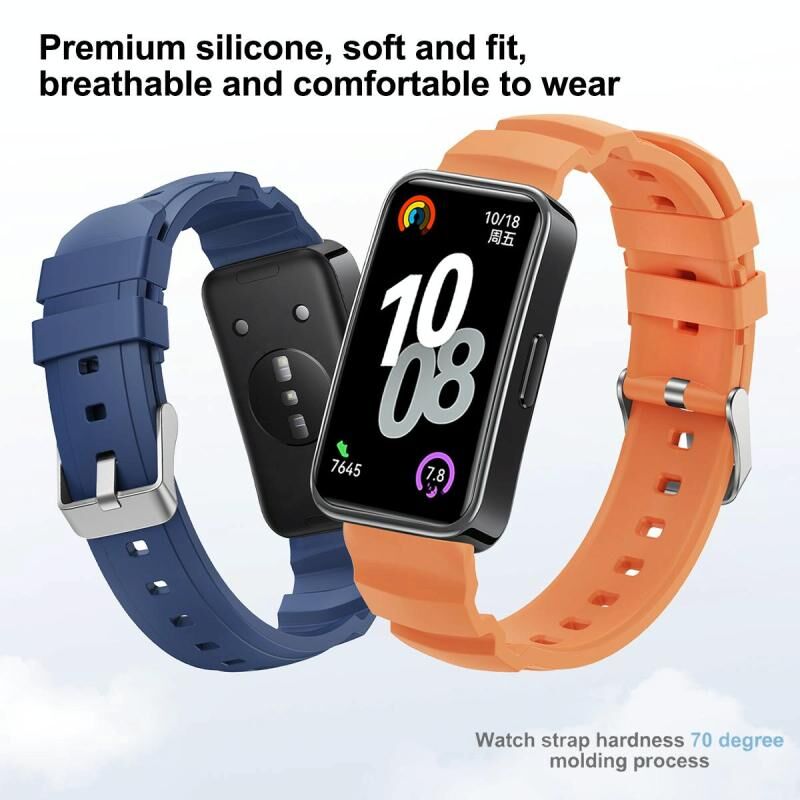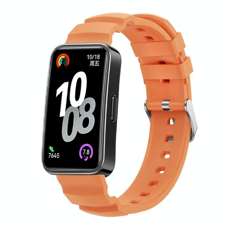 For Huawei Band 10 / 9 / 8 Silver Buckle Silicone Watch Band(Orange)