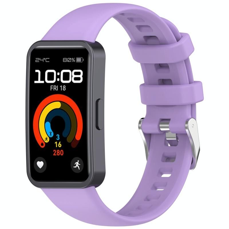 For Huawei Band 10 / 9 / 8 Silver Steel Buckle Soft Silicone Watch Band(Purple)