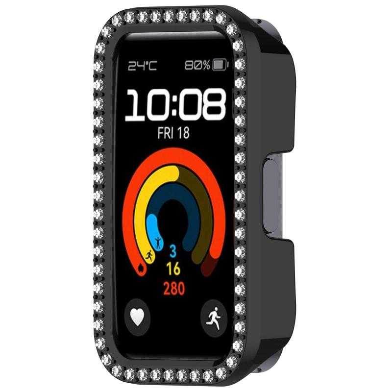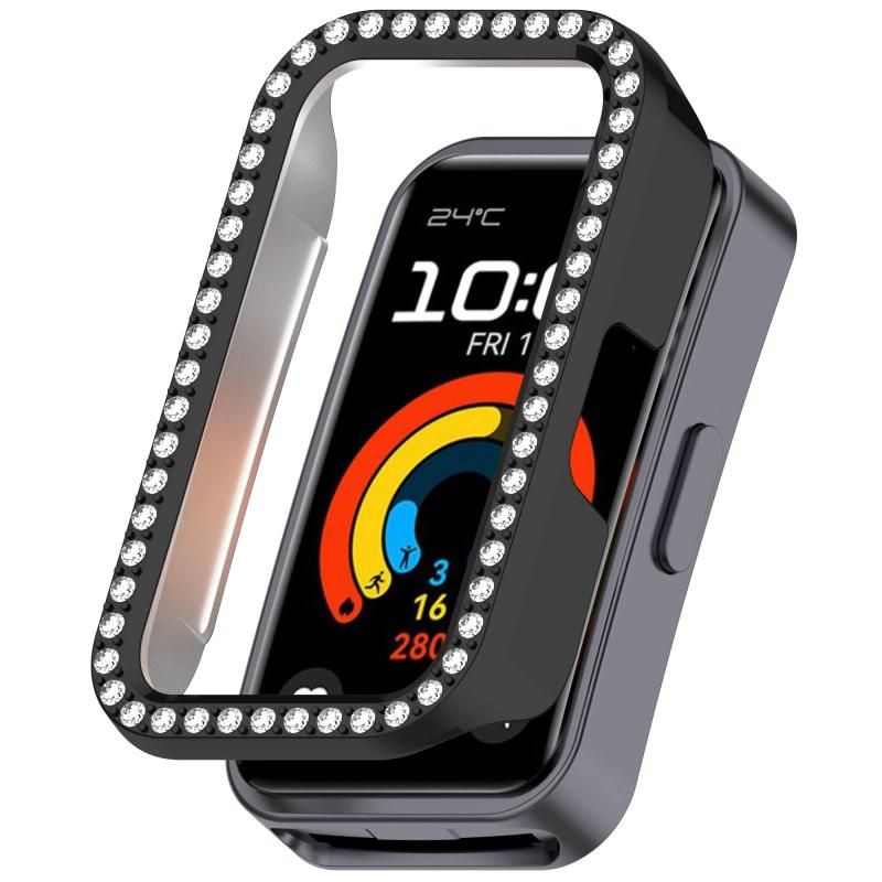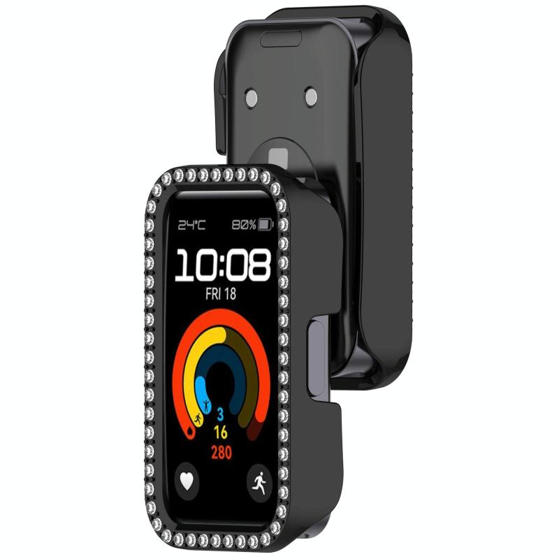 For Huawei Band 10 / 9 / 8 Single Row Diamond Half Coverage PC Hollow Watch Protective Case(Black)