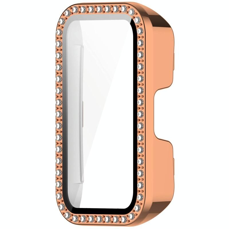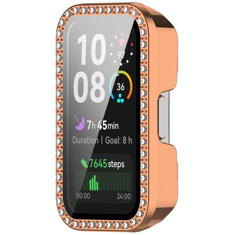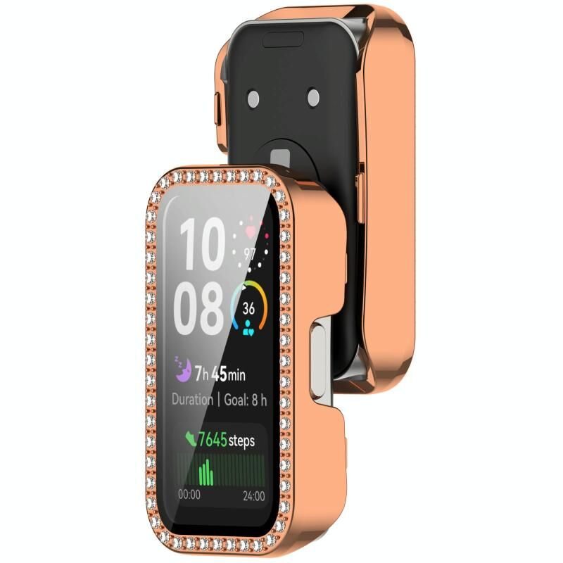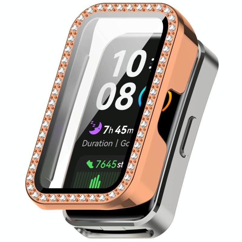 For Huawei Band 10 / 9 / 8 Single Row Diamond Tempered Film Integrated PC Watch Case(Rose Gold)