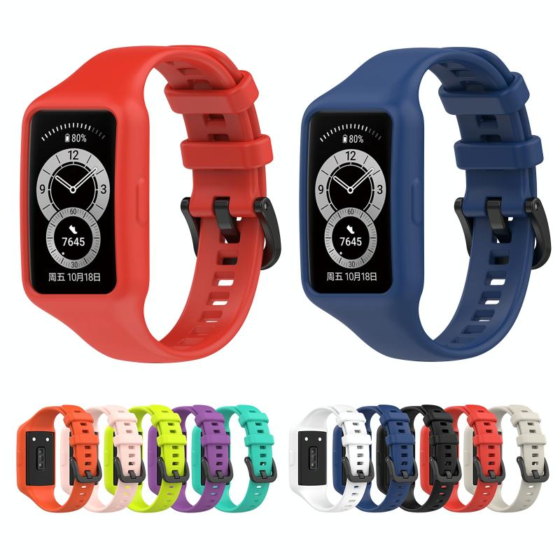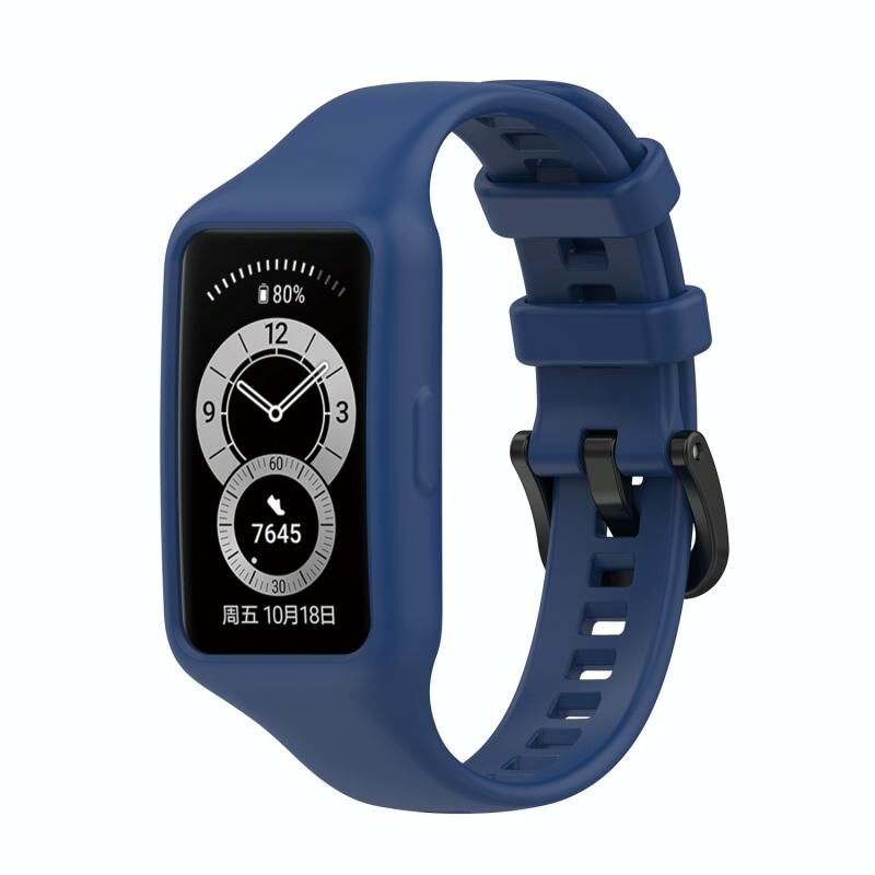 For Huawei Band 7 / 6 Pro / 6 / Honor Band 7 / 6 Universal Integrated Silicone Watch Band(Navy Blue)
