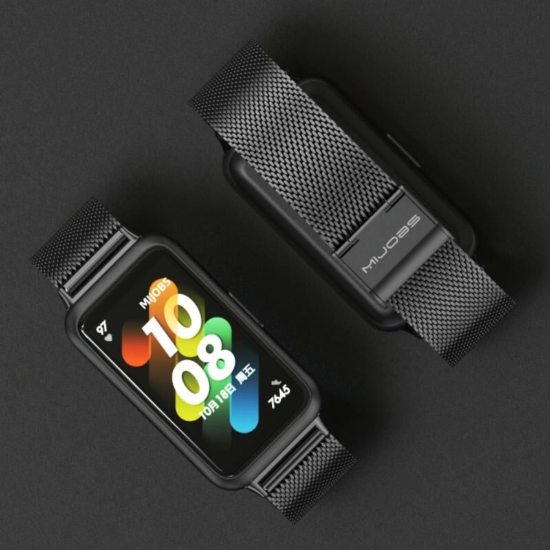 For Huawei Band 7 / 7 NFC MIJOBS Milan Buckle Stainless Steel Watch Band(Black)