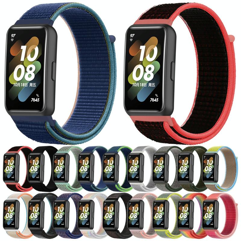 For Huawei Band 7 Nylon Loop Buckle Watch Band(Red Black)