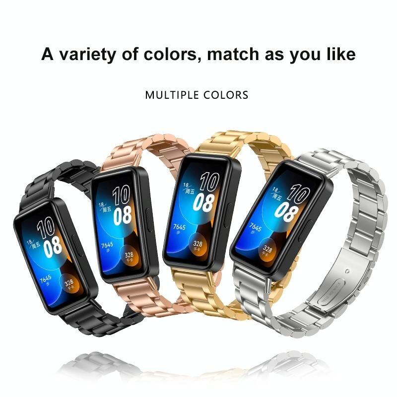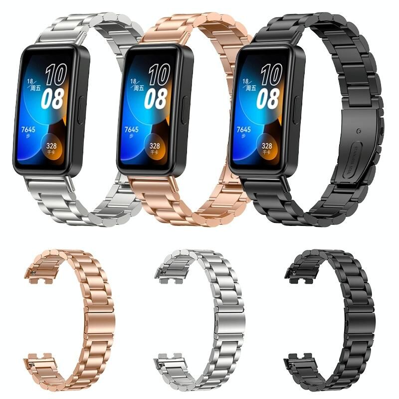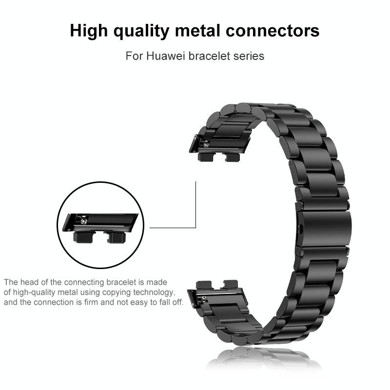 Για Huawei Band 8 16mm Τρία στελέχη μεταλλική ζώνη αντικατάστασης ρολογιού (μαύρο)