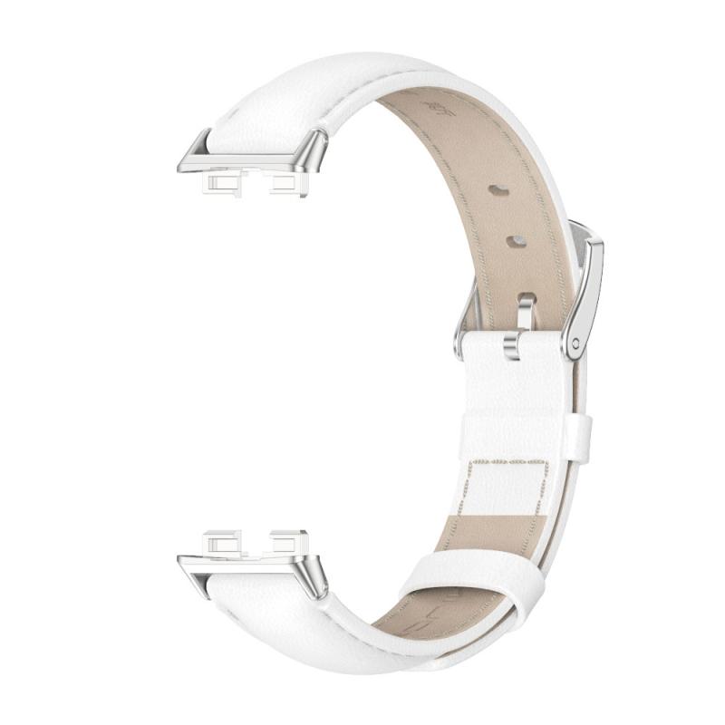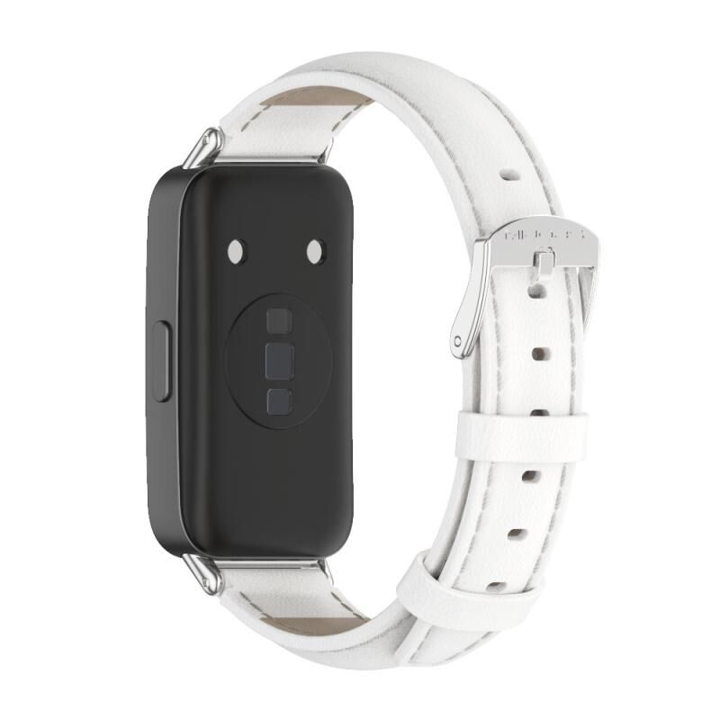 For Huawei Band 8 / 9 / 10 Mijobs Cowhide Leather Watch Band(White Silver) (MIJOBS)