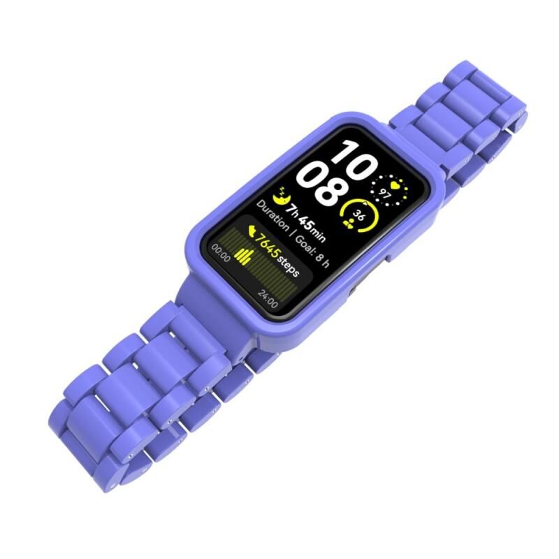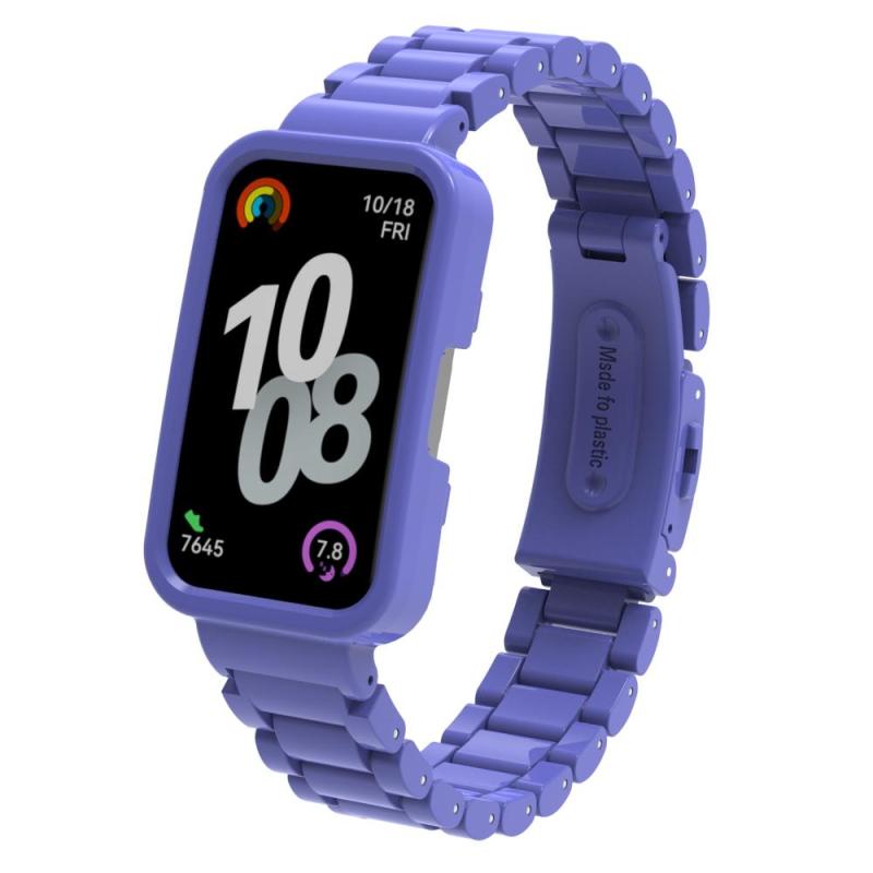 For Huawei Band 8 / 9 / 10 Watch Frame Integrated Three Beads Plastic Watch Band(Colorful Blue)