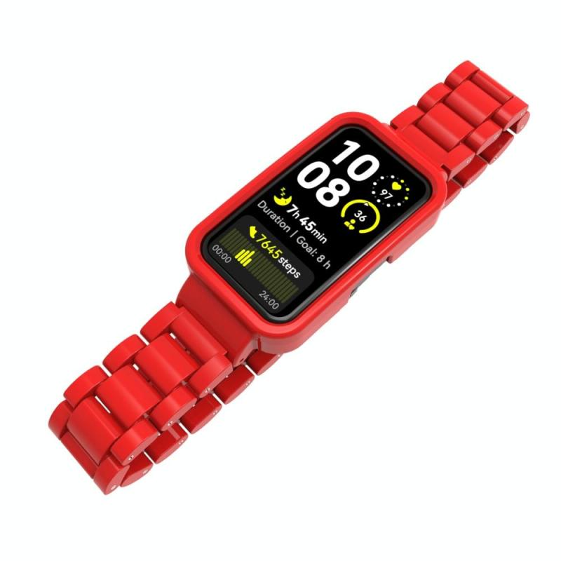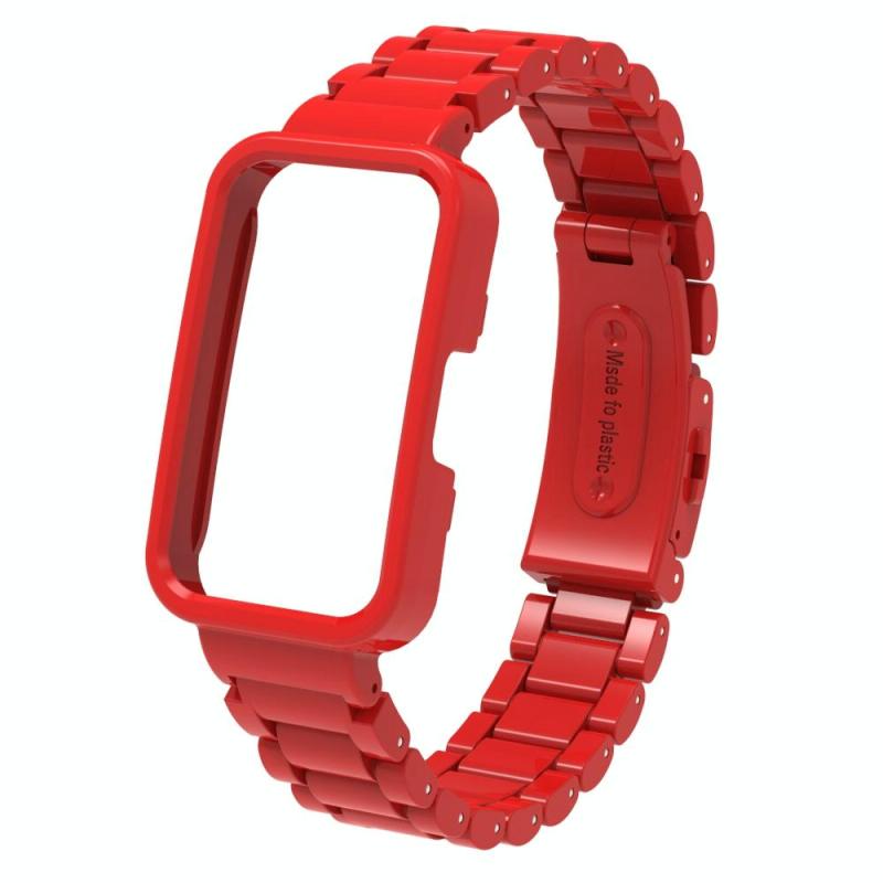 For Huawei Band 8 / 9 / 10 Watch Frame Integrated Three Beads Plastic Watch Band(Red)