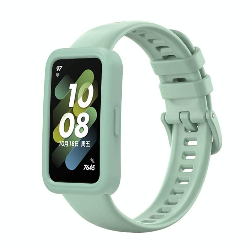 For Huawei Band 8 Silicone Protective Case + Silicone Watch Band Kit(Light Green)