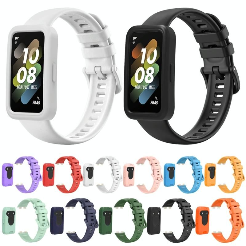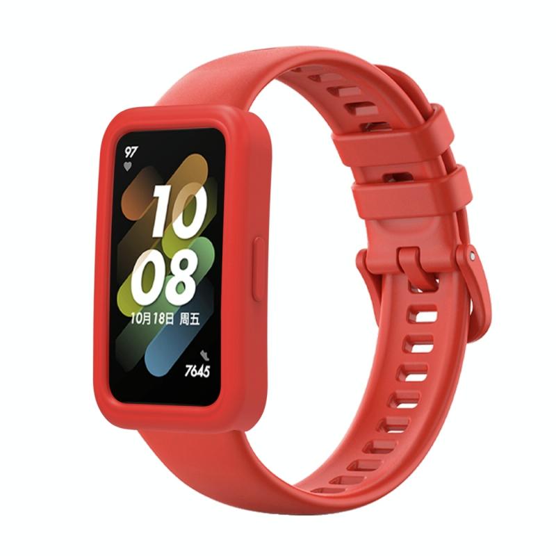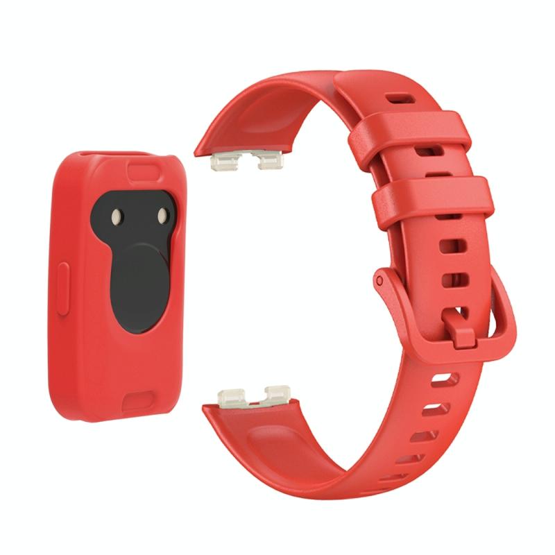 For Huawei Band 8 Silicone Protective Case + Silicone Watch Band Kit(Red)