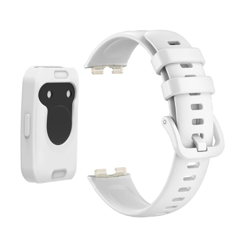 For Huawei Band 8 Silicone Protective Case + Silicone Watch Band Kit(White)