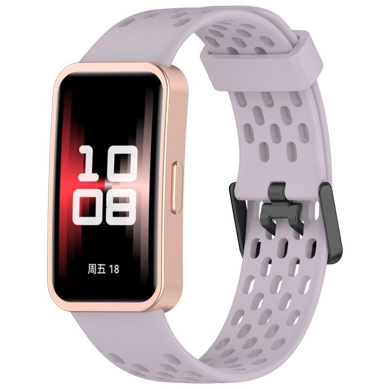 For Huawei Band 9 / 9 NFC / 8 / 8 NFC Hole Style Dual Black Buckle Silicone Watch Band(Lavender Purple)