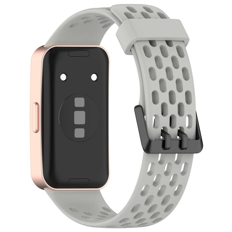 For Huawei Band 9 / 9 NFC / 8 / 8 NFC Hole Style Dual Black Buckle Silicone Watch Band(Rock Ash)