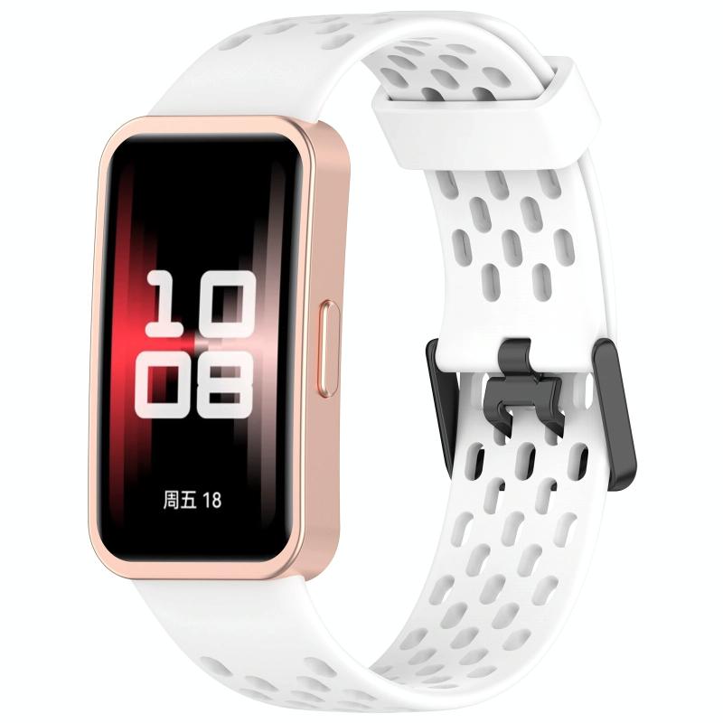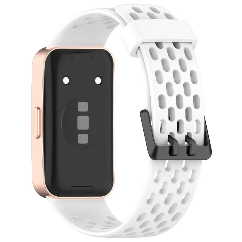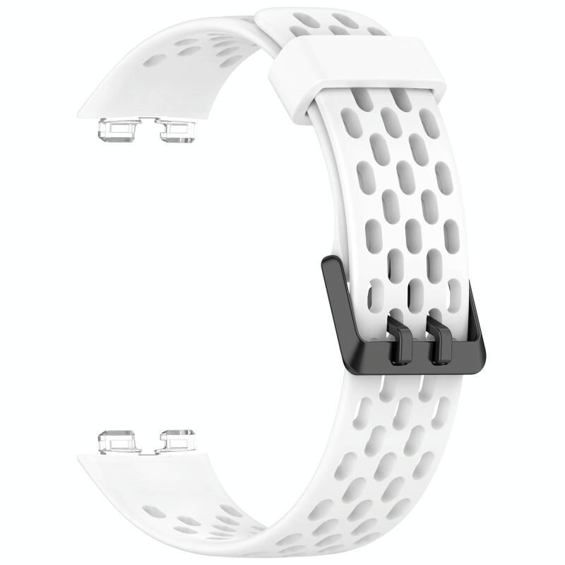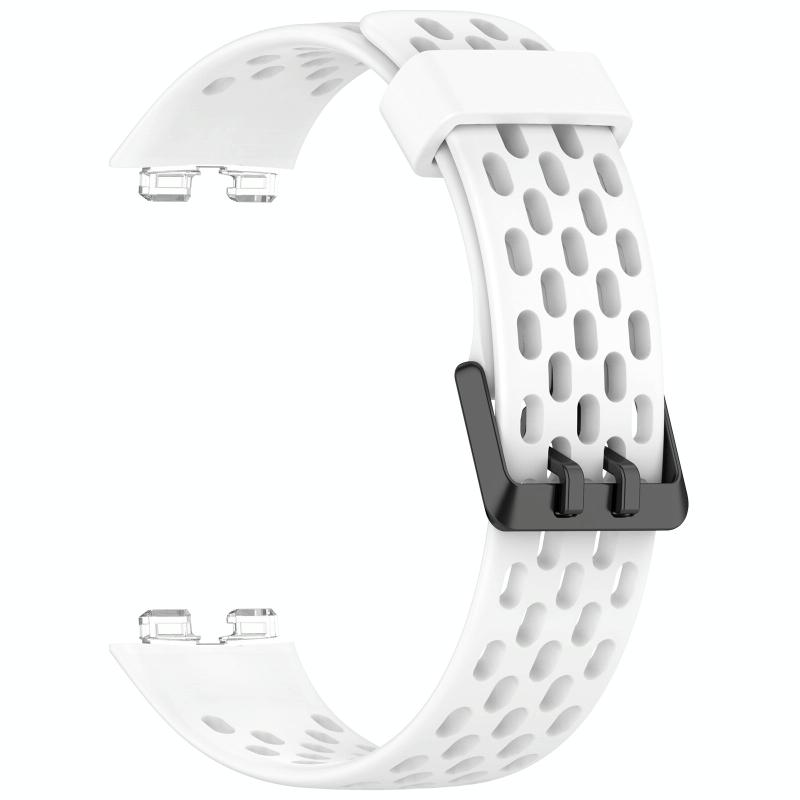 For Huawei Band 9 / 9 NFC / 8 / 8 NFC Hole Style Dual Black Buckle Silicone Watch Band(White)