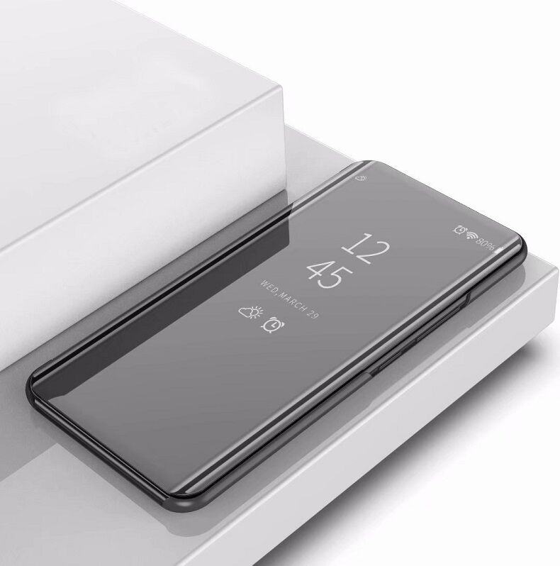 Για Huawei Enjoy 10 Plus Επιμετάλλωση καθρέφτη αριστερά και δεξιά Flip Cover με στήριγμα Holster (μαύρο)