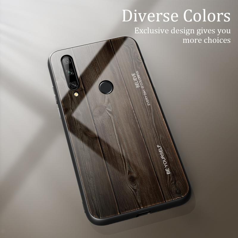 Για Huawei Enjoy 10 Plus Θήκη από Τεμπερισμένο Γυαλί με Υφή Ξύλου + Αντικραδασμική Θήκη TPU (M01)
