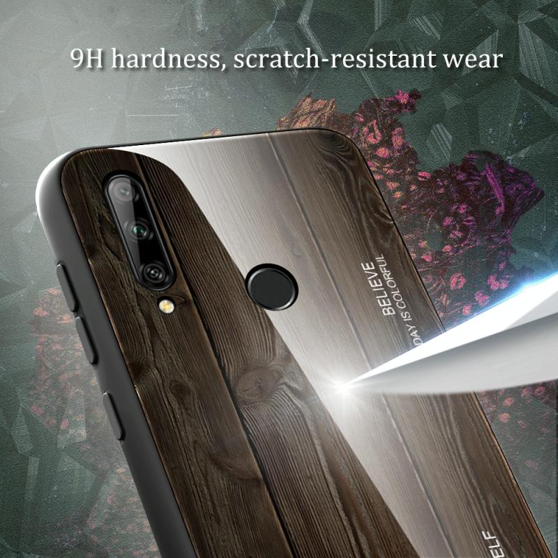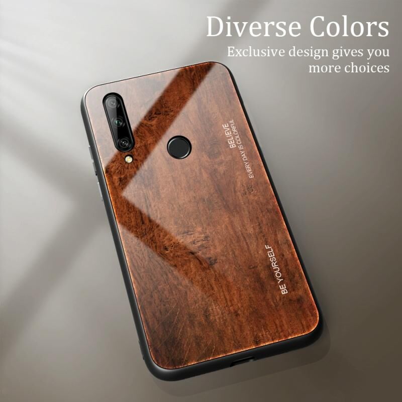 Για Huawei Enjoy 10 Plus Θήκη από Tempered Glass με σχέδιο ξύλου + TPU αντικραδασμική (M02)
