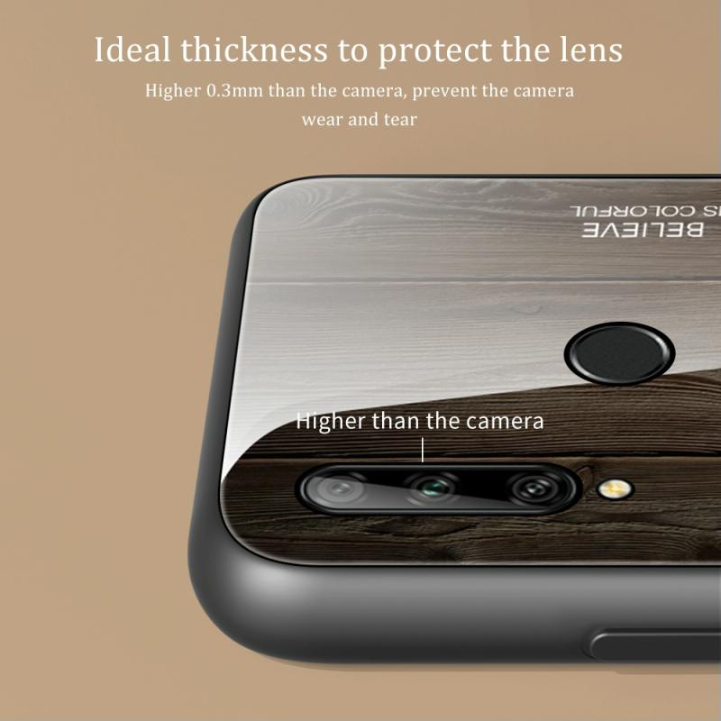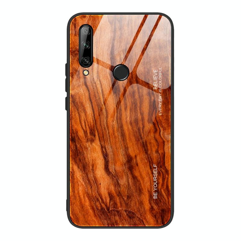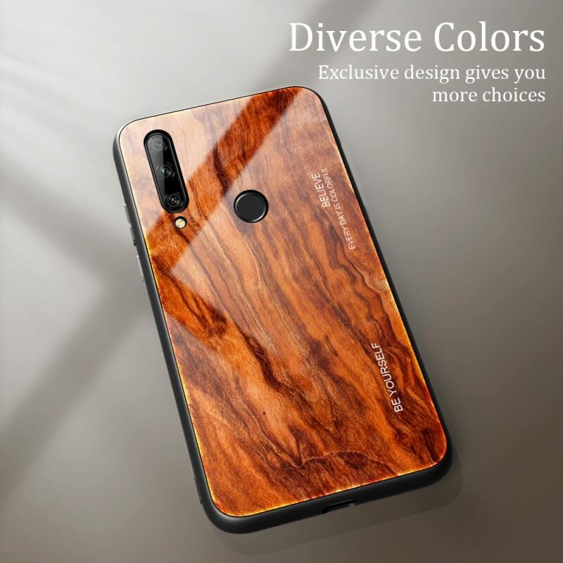 Για Huawei Enjoy 10 Plus Θήκη από Τεμπερισμένο Γυαλί με Υφή Ξύλου + Αντικραδασμική Θήκη TPU (M06)