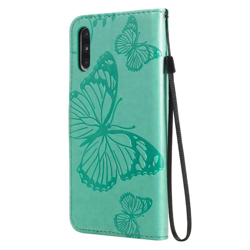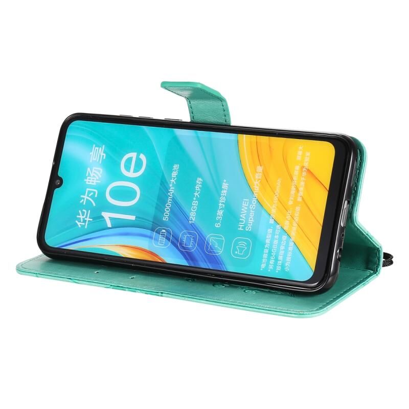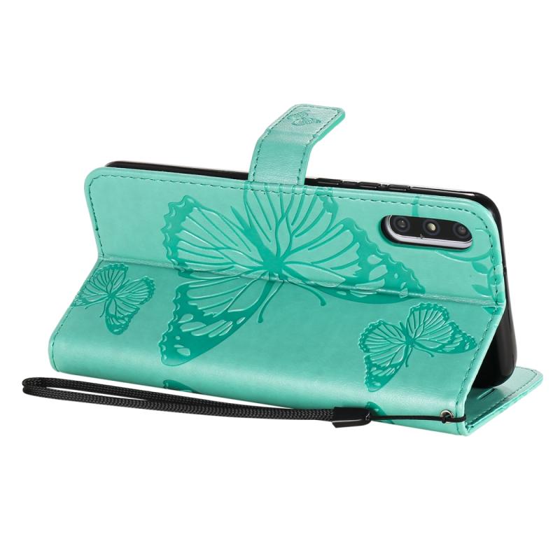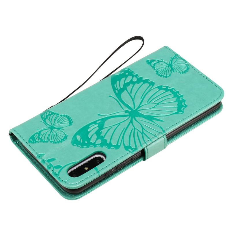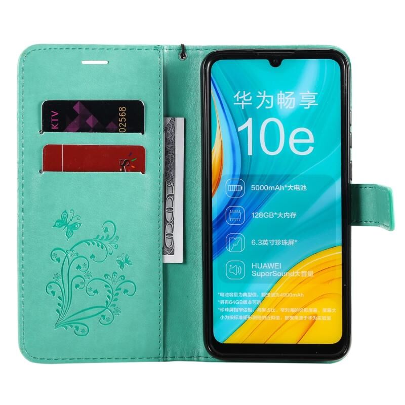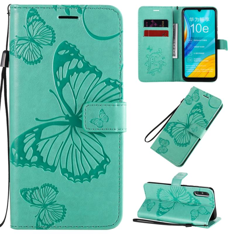 Θήκη δέρματος οριζόντιας αναδίπλωσης με ανάγλυφο σχέδιο 3D πεταλούδων για Huawei Enjoy 10e, με βάση στήριξης, θήκη για κάρτες, πορτοφόλι και κορδόνι (πράσινο)