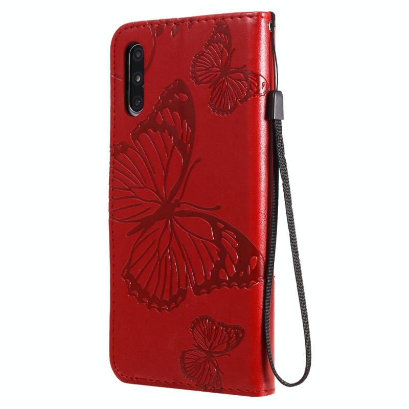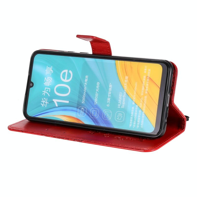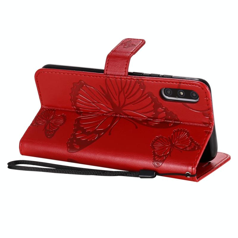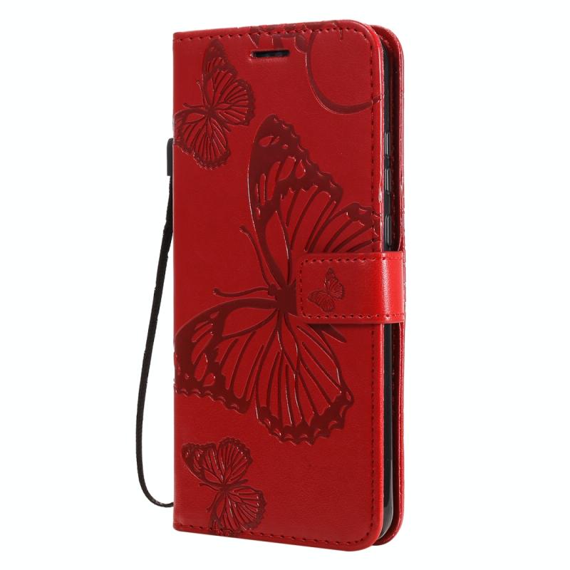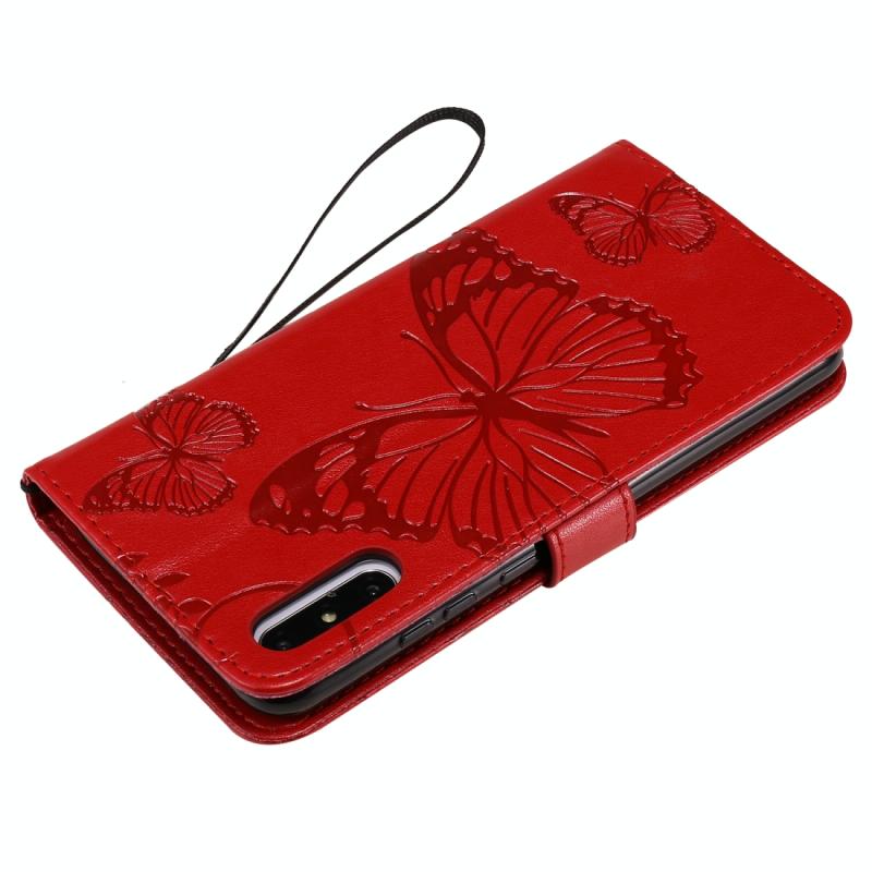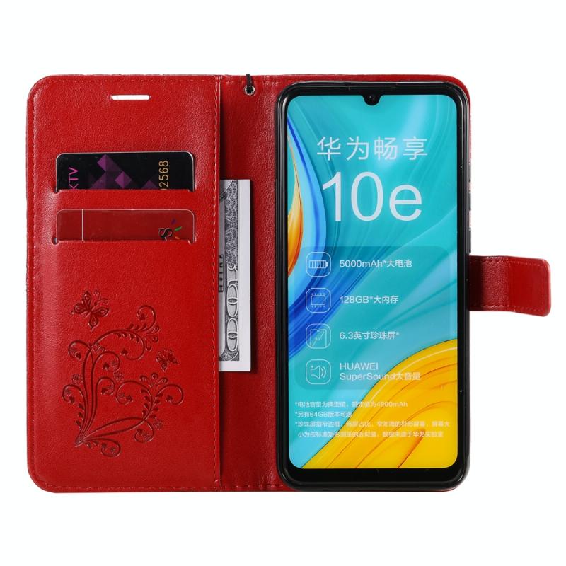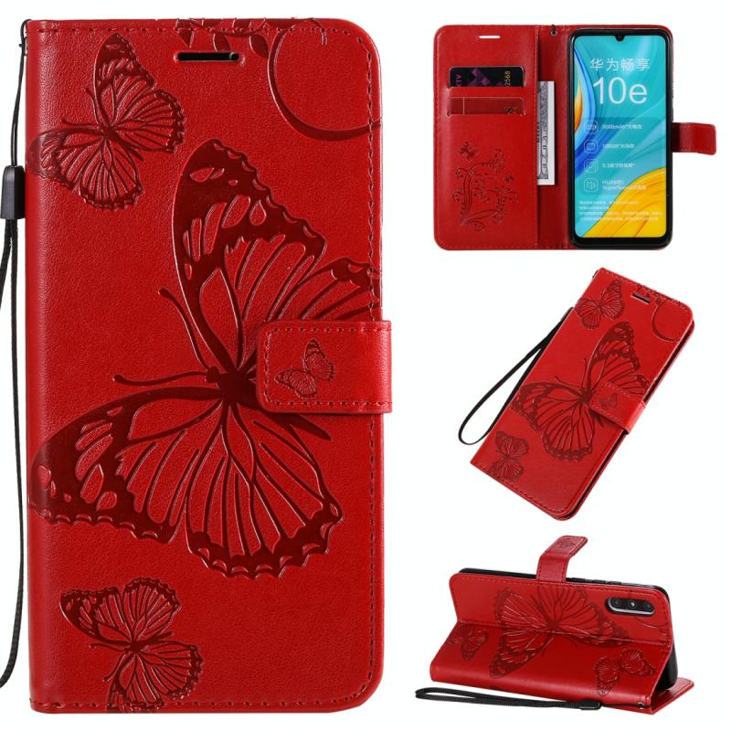 Θήκη δέρματος οριζόντιας αναδίπλωσης με ανάγλυφο σχέδιο 3D πεταλούδων για Huawei Enjoy 10e, με βάση στήριξης, θήκη για κάρτες, πορτοφόλι και κορδόνι (Κόκκινο)