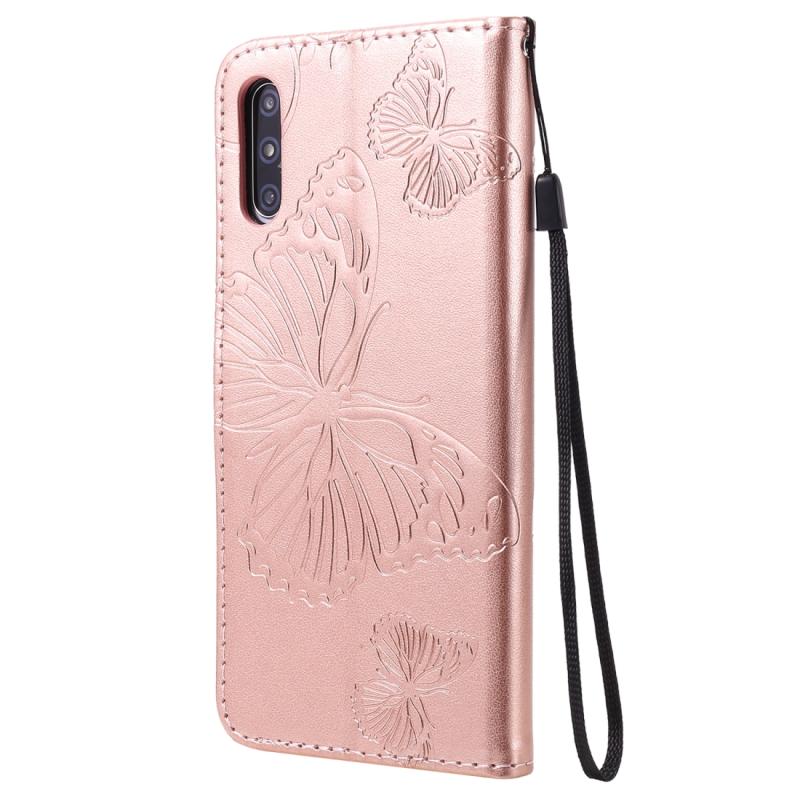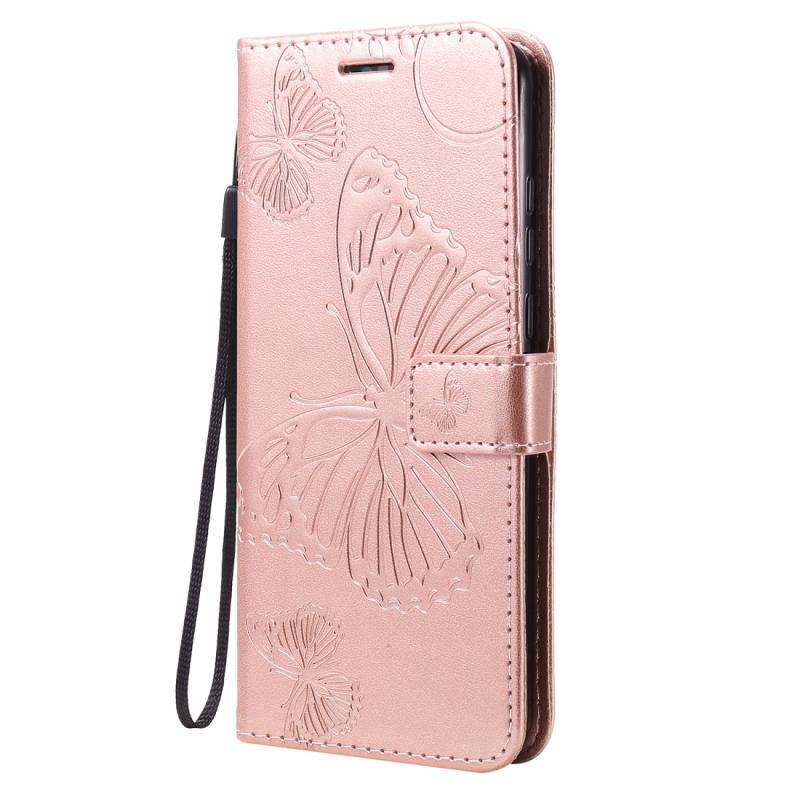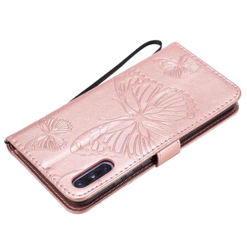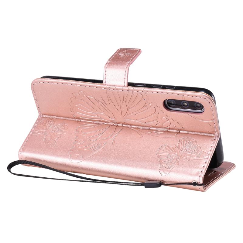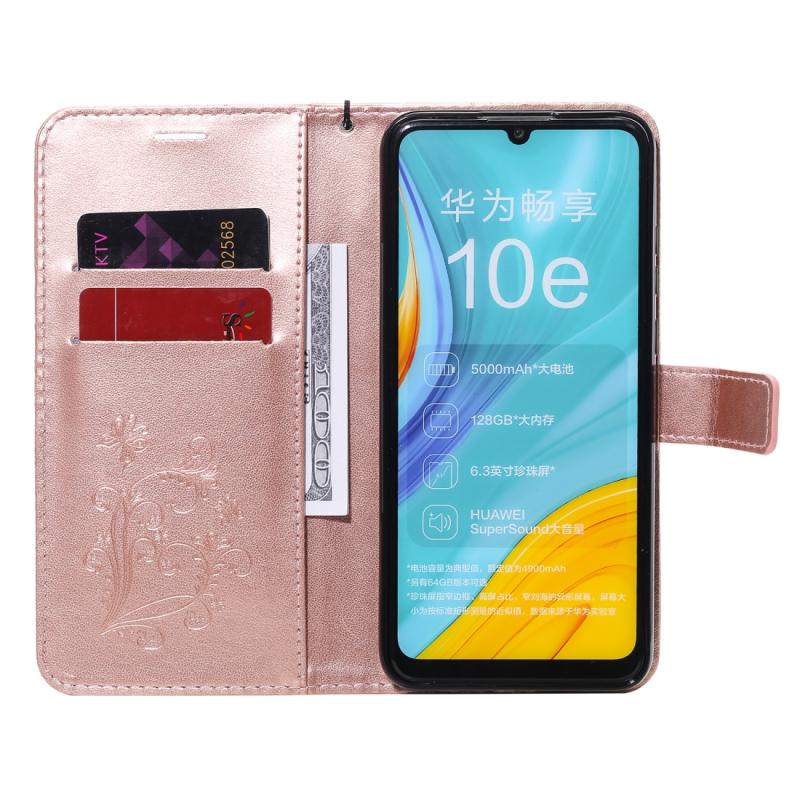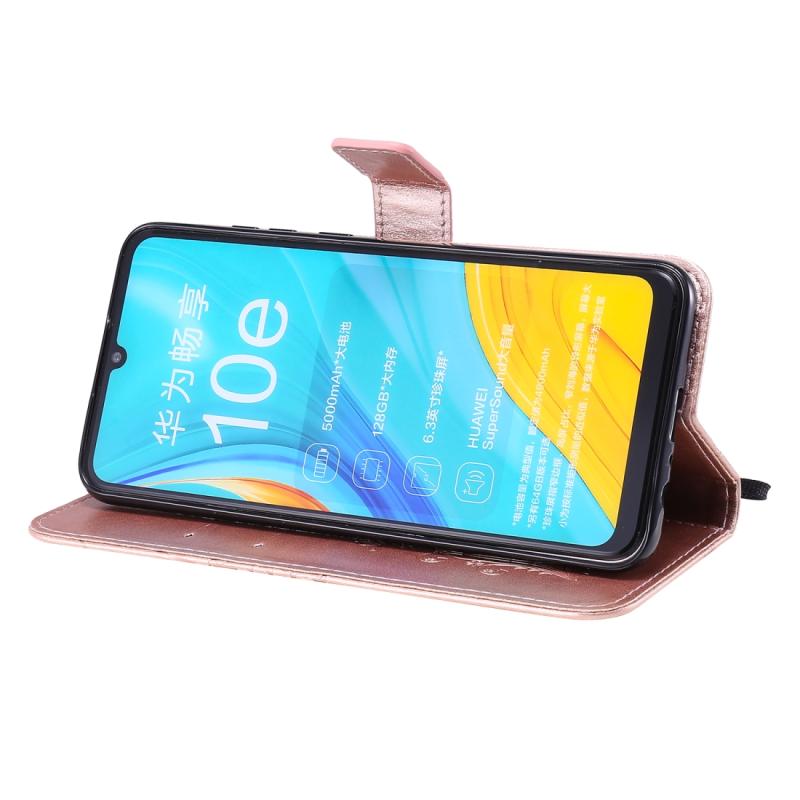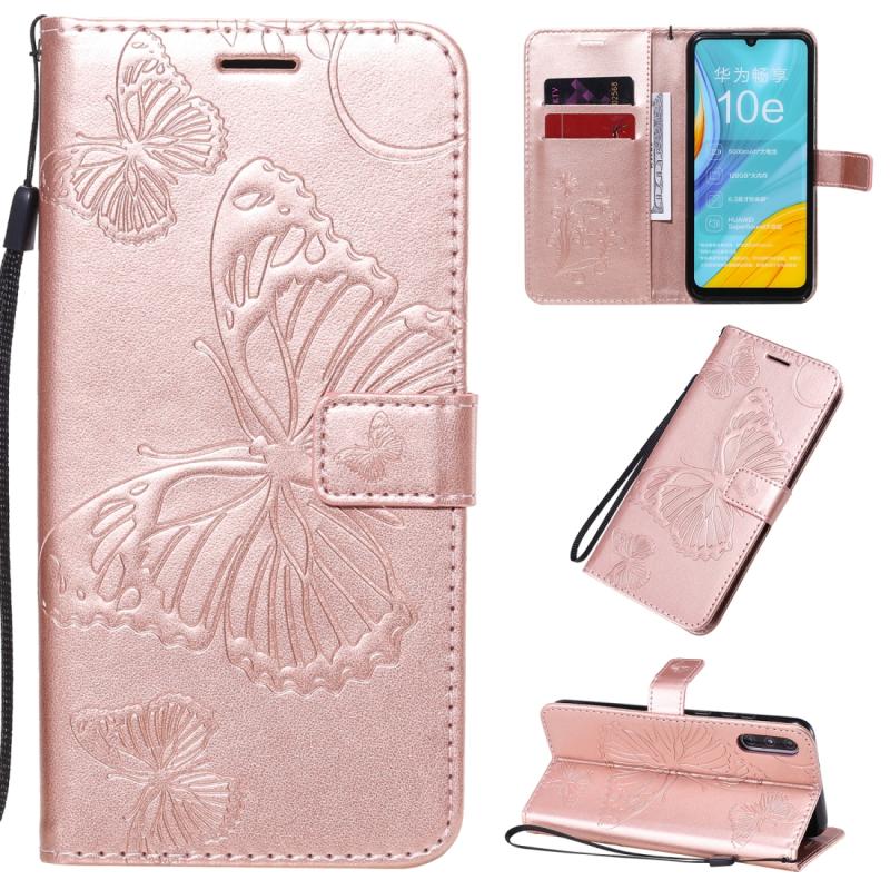 Θήκη δέρματος οριζόντιας αναδίπλωσης με ανάγλυφο σχέδιο 3D πεταλούδων για Huawei Enjoy 10e, με βάση στήριξης, θήκη καρτών, πορτοφόλι και κορδόνι (Χρυσό Ρόδινο). (Ροζ χρυσός)