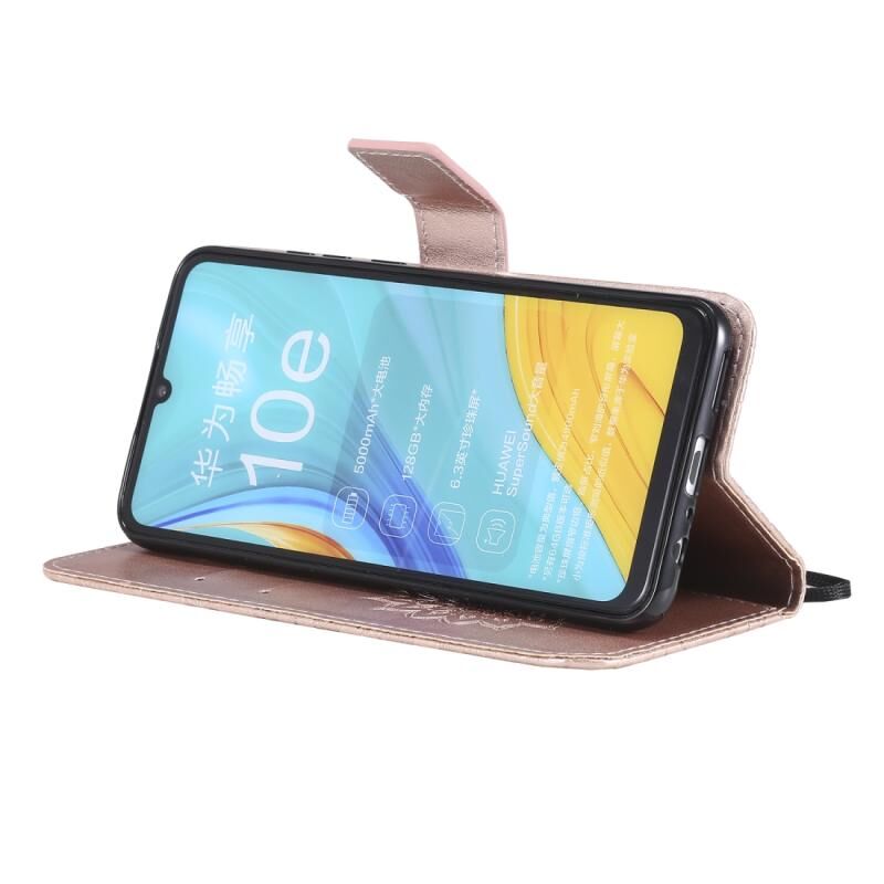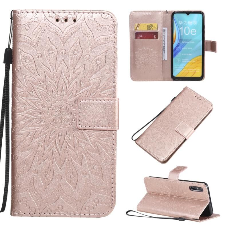 Θήκη Huawei Enjoy 10e με εκτύπωση ηλιοτροπίου, οριζόντια αναδίπλωση, από δερματίνη PU με βάση στήριξης, θήκες για κάρτες, πορτοφόλι & λουρί (Μωβ)
