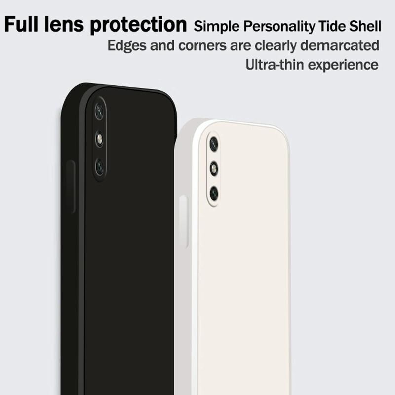 Θήκη προστασίας πλήρους κάλυψης με ίσια άκρη, αντιολισθητική, υγρή σιλικόνη με απομίμηση συμπαγούς χρώματος για Huawei Enjoy 10e (Σκούρο πράσινο)