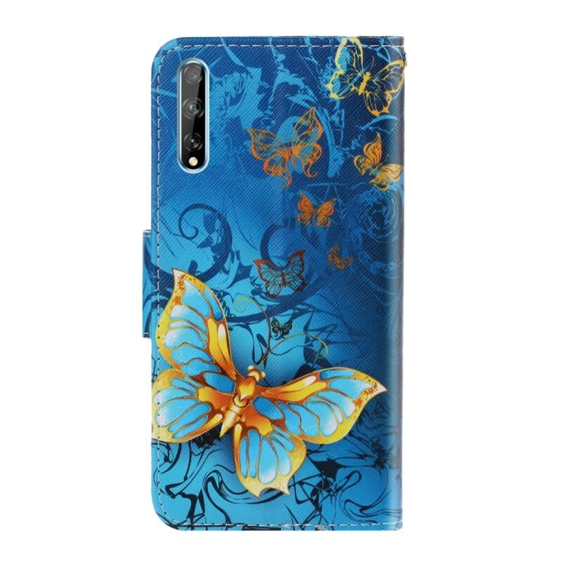Θήκη δέρματος οριζόντιας αναδίπλωσης με σχέδιο και χρώματα για Huawei Enjoy 10S με βάση στήριξης & υποδοχή κάρτας & πορτοφόλι (Jade Butterfly)