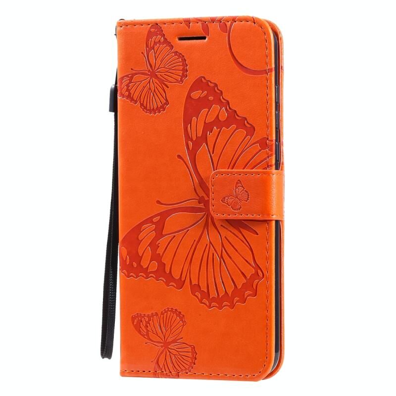 Θήκη Huawei Enjoy 10s με σχέδιο πεταλούδας, εκτύπωση υπό πίεση, οριζόντια αναδίπλωση από δερματίνη PU με βάση στήριξης, θήκες για κάρτες, πορτοφόλι & λουρί (Πορτοκαλί)