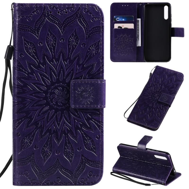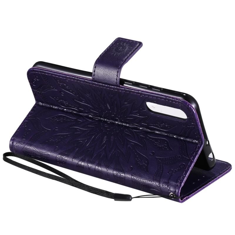Θήκη Huawei Enjoy 10S με εκτύπωση ηλιοτροπίου, οριζόντια αναδίπλωση, από δερματίνη PU με βάση στήριξης, θήκες για κάρτες, πορτοφόλι & λουρί (Πράσινο)