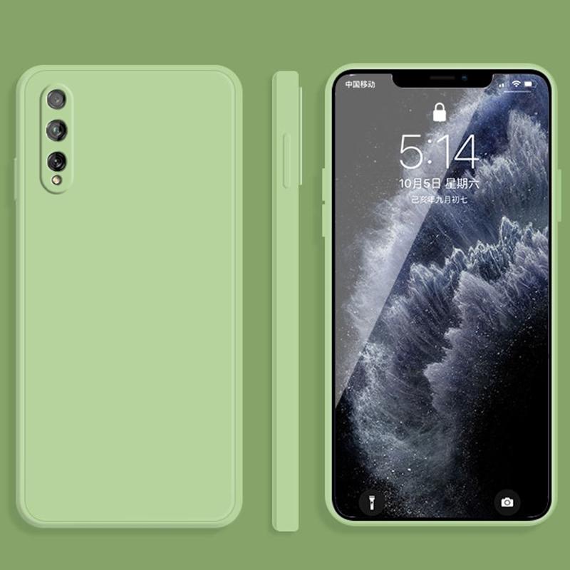 Θήκη προστασίας πλήρους κάλυψης με ίσια άκρη, αντιολισθητική, υγρή σιλικόνη με απομίμηση συμπαγούς χρώματος για Huawei Enjoy 10s (Πράσινο Matcha)