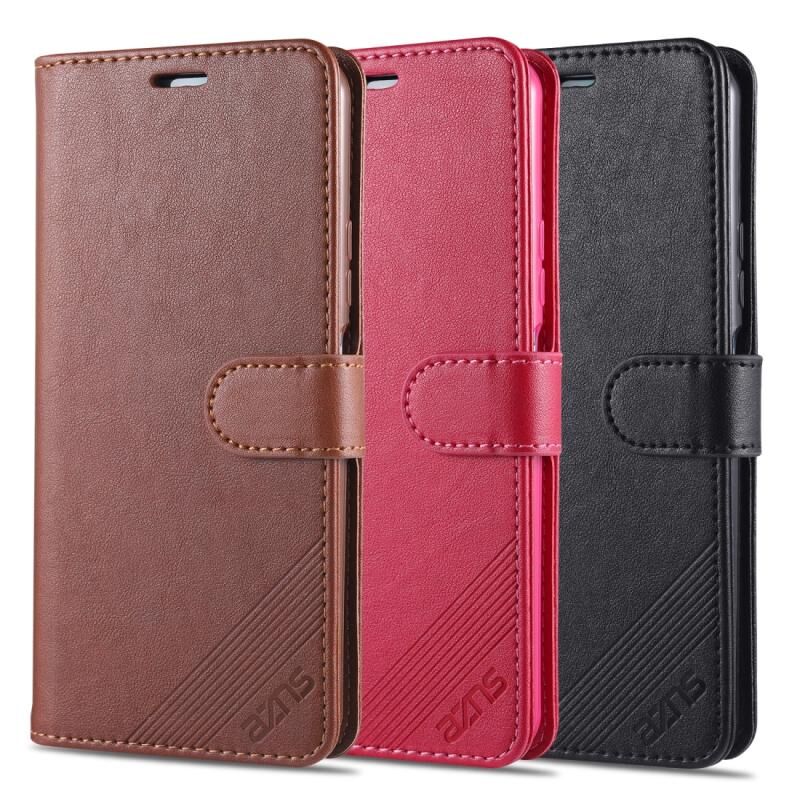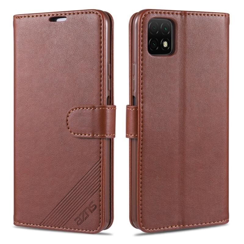 Θήκη Huawei Enjoy 20 AZNS από Δέρμα με Υφή Δέρματος Προβάτου, Οριζόντια, με Στήριξη & Θήκες Καρτών & Πορτοφόλι (Καφέ) (AZNS)