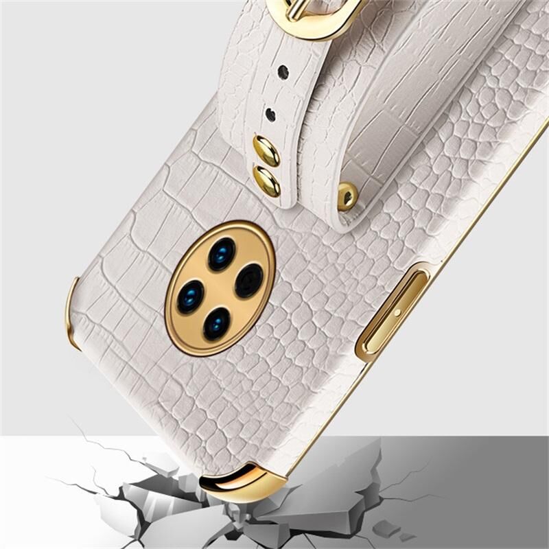 Θήκη για Huawei Enjoy 20 Plus με Επικάλυψη Ηλεκτρολυτικής Επεξεργασίας, Δερμάτινη με Υφή Κροκόδειλου και Λουρί Χεριού (Λευκό)