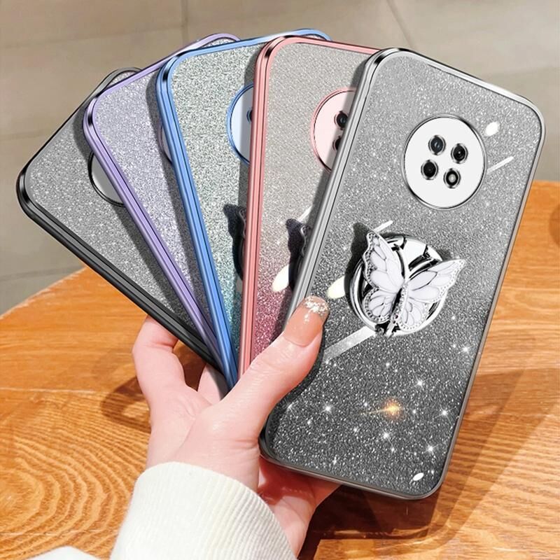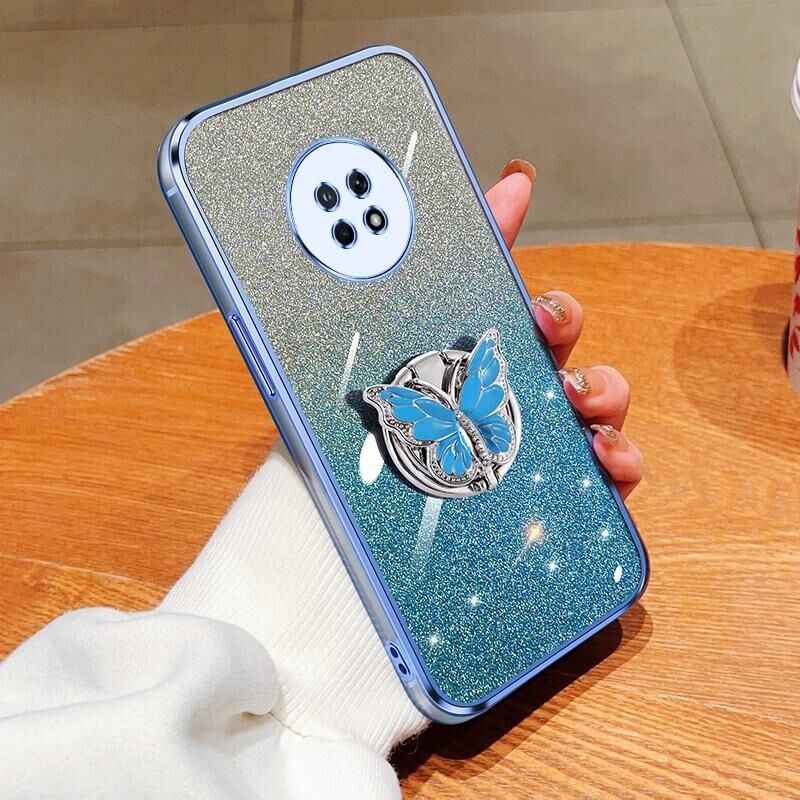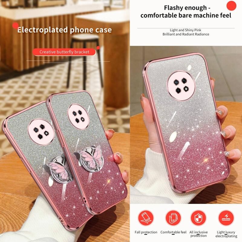 Θήκη κινητού τηλεφώνου Huawei Enjoy 20 Plus με επιμετάλλωση, διαβαθμισμένη λάμψη, σχέδιο πεταλούδας, από TPU (Ροζ)