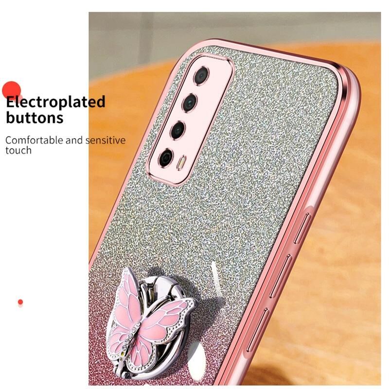 Θήκη κινητού τηλεφώνου Huawei Enjoy 20 SE 4G, TPU με σχέδιο πεταλούδας, γυαλιστερό, διαβαθμισμένο χρώμα (Ροζ)